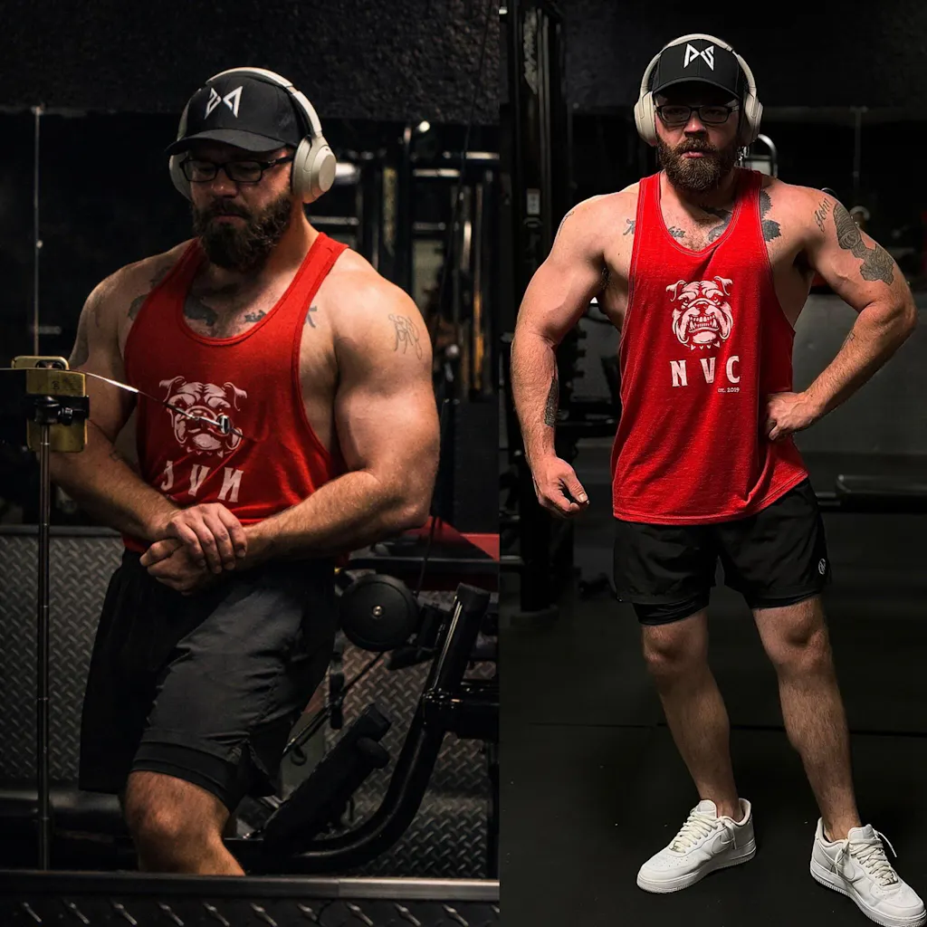The NVC Stringer is designed to move with you through heavy lifts, long sessions, and everyday grind. Lightweight, breathable, and cut to highlight the work you’ve put in. This isn’t just a tank — it’s a statement.